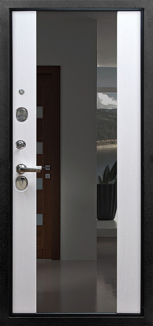 Декоративные элементы тоже играют роль в дизайне. Для экономии пространства внутри квартиры выбирают белая входная дверь с зеркалом на внутренней стороне полотна – зеркало визуально увеличивает прихожую и очень практично. А для частного дома уместна белая входная дверь со стеклом или витражом: стеклянные вставки впускают дневной свет и украшают фасад. При желании можно комбинировать цвета: часто внешняя сторона двери оформляется в тёмном оттенке (например, чёрном), а внутренняя – светлая. Такая дверь входная чёрно-белая удобна тем, что снаружи менее маркая, а внутри радует светлым дизайном.