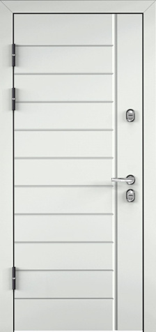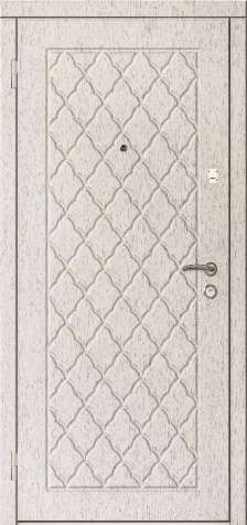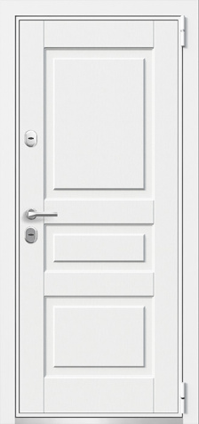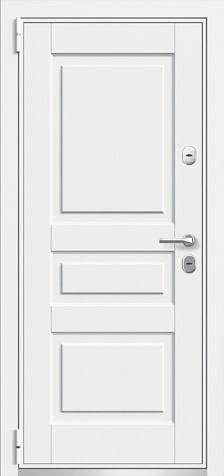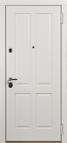 Другой вариант – окраска эмалью. Входные двери белая эмаль отличаются идеально ровной гладкой поверхностью. Эмалевое покрытие часто применяется для декоративных MDF-панелей, которыми отделывают дверь снаружи или изнутри. Популярны панели под выбеленные породы дерева: например, цвет белый ясень или белёный дуб. Такая отделка придаёт металлической двери уютный вид натурального дерева в светлом оттенке. Металлические двери с панелями цвета белый ясень востребованы для квартир и домов благодаря благородному внешнему виду.