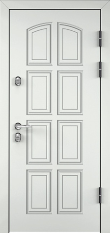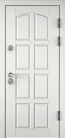 Белые металлические двери ничуть не уступают другим по прочности и тепло-звукоизоляции. Качественная дверь металлическая белого цвета изготавливается из стали нужной толщины, оснащается надёжными замками и утеплителем – цвет покрытия не влияет на эти параметры. Обратите внимание на фурнитуру: на белом фоне бросаются в глаза даже мелочи. Петли, замочная накладка, глазок – все элементы должны гармонировать по цвету и стилю. Хороший производитель обычно предлагает варианты комплектации фурнитуры под цвет двери или в эффектном контрасте.