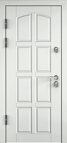 Современные белые входные металлические двери различаются по материалам отделки и дизайну. Чаще всего металлическое полотно покрывается порошково-полимерной краской белого цвета. Такое покрытие стойкое к влаге, ультрафиолету и царапинам, бывает матовым, глянцевым или с фактурой “шагрень”. Белая матовая входная дверь, выполненная порошковым напылением, практична для улицы: её легко помыть, и она долго сохраняет цвет.