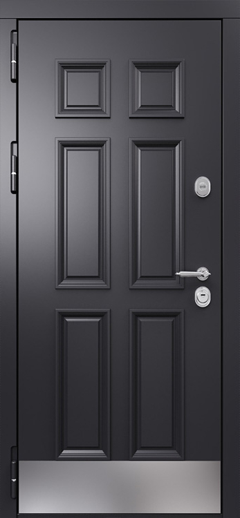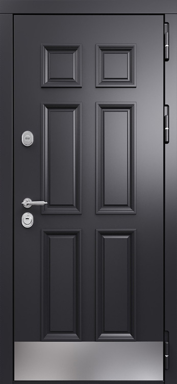 Входная дверь с МДФ №566 создана для тех, кто ценит прочность металла и уютный внешний вид в одном решении. Она одинаково хорошо вписывается в частный дом, квартиру или офис, подчеркивая солидность пространства и обеспечивая надежную защиту. Каркас и полотно собраны из профильных труб, усиленных ребрами жесткости, а стальной лист толщиной 2 мм гарантирует устойчивость к взлому и длительный срок службы. С обеих сторон дверь облицована МДФ панелями с ПВХ-покрытием, что делает поверхность более устойчивой к истиранию и мелким повреждениям, сохраняя привлекательность даже при интенсивной эксплуатации. Панели легко очищаются и не выгорают на солнце, благодаря чему дверь подходит и для уличной установки. Два контура уплотнения надежно защищают от сквозняков и посторонних запахов, а при необходимости можно дополнительно усилить конструкцию тепло- и шумоизоляцией. Модель №566 сочетает в себе сдержанный дизайн и функциональность, делая ее практичным выбором для самых разных помещений. Входная дверь с МДФ №566 от производителя: быстрое изготовление и монтаж в Ожерелье, индивидуальные размеры, широкий выбор материалов и фурнитуры, официальная гарантия до 10 лет.