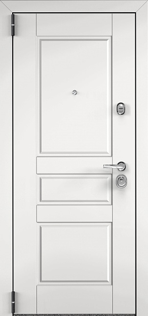 Белая металлическая дверь входная для дома №33 выделяется своим свежим и современным обликом. Универсальный белый цвет делает её уместной как в частном коттедже, так и в квартире или офисе, визуально добавляя простора и подчеркивая аккуратность фасада или интерьера. Конструкция двери основана на стальном листе толщиной 2 мм и усилена профильными трубами, что гарантирует надежность и устойчивость к нагрузкам. Важная особенность модели — наличие терморазрыва в полотне и коробке: благодаря этому дверь не промерзает в зимний период, исключается конденсат и сохраняется комфорт внутри помещения. Внешняя и внутренняя отделка выполнена из МДФ с ПВХ-покрытием, которое защищает поверхность от влаги и механических повреждений, сохраняя первозданный вид надолго. Два контура уплотнителя обеспечивают герметичность и дополнительную защиту от сквозняков. Эта дверь удачно сочетает эстетику и практичность, создавая надежный вход в любое жилище. Белая металлическая дверь входная для дома №33 от производителя: быстрое изготовление и монтаж в Ожерелье, индивидуальные размеры, широкий выбор материалов и фурнитуры, официальная гарантия до 10 лет.