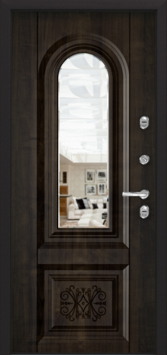 Дверь тёплая входная в частный дом №49 создана для тех, кто ценит надёжность и практичность без лишних компромиссов. Конструкция из профильных труб и стали толщиной 2 мм обеспечивает прочность и устойчивость к взлому, а двойной контур уплотнителя защищает от сквозняков и влаги. Особенность модели — встроенное зеркало, которое не только добавляет удобства, но и визуально расширяет пространство прихожей. Снаружи и внутри дверь отделана МДФ-накладками, материалом, который хорошо переносит повседневные нагрузки, не боится царапин и сохраняет привлекательный вид долгие годы. Замковая система сочетает сувальдный и цилиндровый механизмы от российских производителей, что делает вход максимально безопасным. Модель подходит для установки как в частный дом, так и в квартиру или офис, а возможность комбинировать отделку и дополнять конструкцию стеклопакетами или ковкой открывает простор для индивидуального дизайна. Дверь теплая входная в частный дом №49 от производителя: быстрое изготовление и монтаж в Ожерелье, индивидуальные размеры, широкий выбор материалов и фурнитуры, официальная гарантия до 10 лет.
