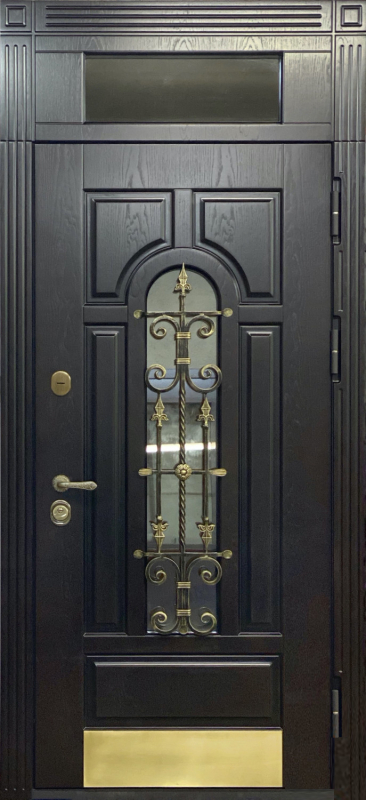 Парадная металлическая дверь с фрамугой №1 — это элегантное и надежное решение для вашего входа. Внешняя и внутренняя отделка из МДФ придает двери не только привлекательный вид, но и устойчивость к внешним повреждениям, что гарантирует долговечность и сохранение первоначального вида. Каркас из профильной трубы и металл толщиной 2 мм обеспечивают прочность и надежность конструкции. Наличие фрамуги позволяет пропускать больше света, создавая ощущение простора. Для дополнительной безопасности предусмотрены блокираторы и замки с тремя ригелями от надежных производителей, таких как Просам и Мосрентген. Варианты отделки, возможность добавления стеклопакетов, зеркала или кованых элементов позволяют адаптировать дверь под любой стиль интерьера. Парадная металлическая дверь с фрамугой №1 от производителя: быстрое изготовление и монтаж в Ожерелье, индивидуальные размеры, широкий выбор материалов и фурнитуры, официальная гарантия до 10 лет.