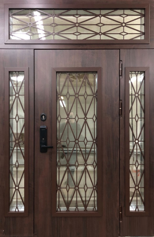 Входная дверь с декоративным рисунком и фрамугой №8 сочетает в себе элегантность и надёжность. Внешняя и внутренняя отделка из панелей МДФ с ПВХ покрытием обеспечивают долговечность и лёгкость в уходе, сохраняя стойкость к внешним воздействиям и механическим повреждениям. Каркас из профильной трубы 50x25 мм и лист металла толщиной 2 мм придают двери прочность, а ребра жесткости из труб 40x25 мм усиливают её устойчивость. Несмотря на отсутствие терморазрыва, конструкция двери с двумя контурами уплотнителей гарантирует отличную изоляцию от холода и шума. Такая дверь идеально подойдёт для установки в местах, где важен стильный внешний вид и безопасность. Входная дверь с декоративным рисунком и фрамугой №8 от производителя: быстрое изготовление и монтаж в Ожерелье, индивидуальные размеры, широкий выбор материалов и фурнитуры, официальная гарантия до 10 лет.