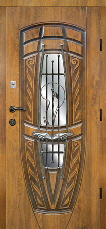 Для загородного дома важна дверь, которая умеет быть не только красивой, но и практичной. Натуральное дерево в отделке делает её внешне солидной и теплой, а декоративная ковка добавляет изящества и превращает вход в стильный акцент фасада. В основе конструкции лежит прочный стальной каркас с листом металла толщиной 1,5 мм и ребрами жесткости, а противосъёмные блокираторы обеспечивают дополнительный уровень защиты. Особого внимания заслуживает терморазрыв, выполненный в коробке и полотне: он надежно изолирует дом от холода, предотвращает промерзание и сохраняет уют даже при сильных морозах. Входная дверь уличная с ковкой №22 также оснащена тройным контуром магнитного уплотнения, что усиливает герметичность и помогает снизить шум. Конструкция позволяет выбирать размеры и дополнения по вкусу, включая стеклопакет, зеркало или видеодомофон, создавая гармонию между безопасностью, удобством и выразительным дизайном. Входная дверь уличная с ковкой №22 от производителя: быстрое изготовление и монтаж в Ожерелье, индивидуальные размеры, широкий выбор материалов и фурнитуры, официальная гарантия до 10 лет.