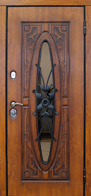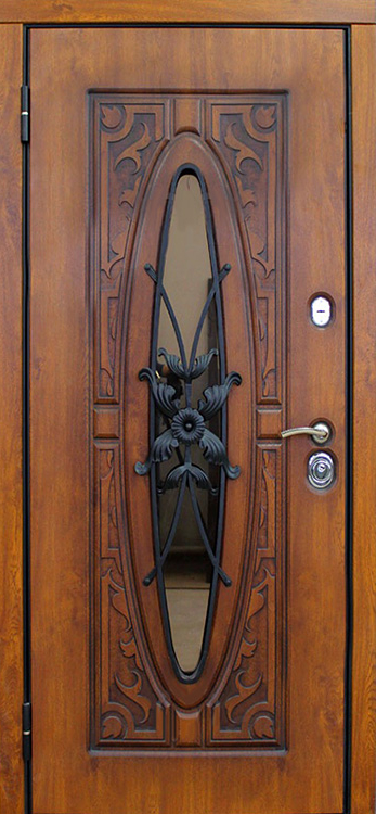В частном доме дверь должна быть не просто барьером, а настоящей визитной карточкой, и именно эту задачу решает входная дверь со стеклом и ковкой №23. Натуральное дерево в отделке придает ей благородный и теплый вид, а декоративная ковка превращает конструкцию в выразительный элемент архитектуры. Внутри скрыт стальной каркас с листом металла 1,5 мм и противосъёмными блокираторами, что обеспечивает прочность и устойчивость к взлому. Особого внимания заслуживает наличие терморазрыва как в коробке, так и в полотне: он защищает от промерзания, исключает появление конденсата и помогает сохранять тепло зимой и прохладу летом. Тройной контур магнитного уплотнения усиливает герметичность и снижает уровень уличного шума, а пенопласт повышенной плотности в качестве наполнителя добавляет теплоизоляции. Входная дверь в частный дом со стеклом и ковкой №23 гармонично сочетает надежность и эстетику, позволяя владельцу адаптировать её под стиль фасада с помощью дополнительных декоративных решений. Входная дверь в частный дом со стеклом и ковкой №23 от производителя: быстрое изготовление и монтаж в Ожерелье, индивидуальные размеры, широкий выбор материалов и фурнитуры, официальная гарантия до 10 лет.
