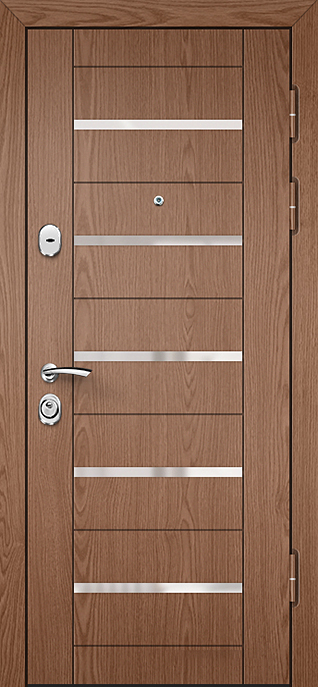 Входная дверь с зеркальным полотном №53 выделяется тем, что зеркало занимает почти всю внутреннюю поверхность, превращая дверь не просто в защитный элемент, а в полноценную часть интерьера. Такое решение особенно удобно для квартир и офисов, где зеркало необходимо ежедневно, а отдельное место для него найти непросто. Каркас изготовлен из профильной трубы и усилен рёбрами жёсткости, стальной лист толщиной 2 мм обеспечивает прочность и устойчивость к нагрузкам. В отделке использованы панели МДФ с ПВХ-покрытием, которые стойко переносят повседневные испытания и сохраняют внешний вид долгие годы. Два контура уплотнения защищают от сквозняков и уличного шума, а возможность выбрать размеры и направление открывания позволяет адаптировать модель для частных домов и городских квартир. Входная дверь с зеркальным полотном №53 от производителя: быстрое изготовление и монтаж в Ожерелье, индивидуальные размеры, широкий выбор материалов и фурнитуры, официальная гарантия до 10 лет.