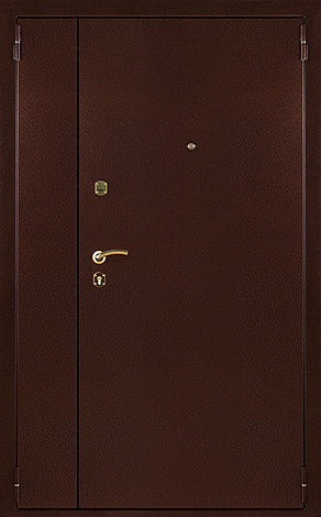 Двухстворчатая металлическая тамбурная дверь эконом №1 сочетает в себе простоту и надежность, что делает её отличным выбором для установки в местах с высокой проходимостью. Внешняя порошковая окраска обеспечивает стойкость к механическим повреждениям, а внутренняя отделка из ламинированных панелей придает двери элегантный вид, сохраняя при этом долговечность и устойчивость к внешним воздействиям. Каркас и полотно выполнены из профильной трубы 50х25 мм, что гарантирует прочность конструкции. Толщина металла 2 мм и наличие ребер жесткости добавляют дополнительную жесткость и защиту. Дверь оснащена замками "Просам" и "Мосрентген", каждый из которых имеет по три ригеля для надежного запирания. Резиновое уплотнение с двумя контурами надежно защищает от попадания влаги и пыли. Возможность комбинировать отделки и добавить зеркало, стеклопакет или кованые элементы позволяет сделать дверь не только функциональной, но и стильной. Тамбурная металлическая двухстворчатая дверь эконом №1 от производителя: быстрое изготовление и монтаж в Ожерелье, индивидуальные размеры, широкий выбор материалов и фурнитуры, официальная гарантия до 10 лет.