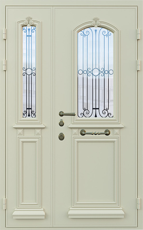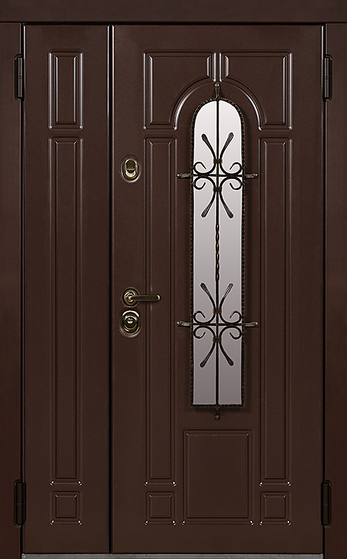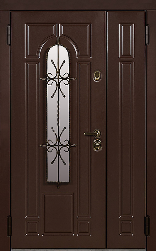 Эта металлическая двухстворчатая дверь с арочным стеклопакетом №15 представляет собой идеальный баланс между эстетикой и прочностью. Арочное стекло добавляет в её дизайн утончённость, а ковка в декоре придаёт изысканный, но в то же время крепкий и надёжный вид. Плита МДФ, используемая как для внешней, так и для внутренней отделки, не только сохраняет прекрасный внешний вид, но и устойчива к механическим повреждениям. Металлическая двухстворчатая дверь с арочным стеклопакетом №15 от производителя: быстрое изготовление и монтаж в Ожерелье, индивидуальные размеры, широкий выбор материалов и фурнитуры, официальная гарантия до 10 лет.