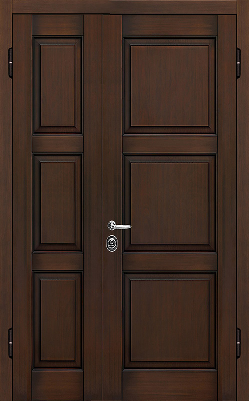 Двойная филенчатая дверь для загородного дома венге №7 сочетает в себе элегантность и прочность. Ее внешняя отделка выполнена из панелей МДФ с ПВХ, что придает двери современный вид, а также обеспечивает устойчивость к механическим повреждениям и долговечность. Каркас из профильной трубы 50х25 мм и полотно толщиной 2 мм гарантируют надежность и устойчивость к нагрузкам. Ребра жесткости из профильных труб 40х25 мм усиливают конструкцию, а уплотнение с двумя контурами защищает от проникновения влаги и пыли. Замки "Просам" и "Мосрентген" с тремя ригелями обеспечивают высокий уровень безопасности. В дверь можно добавить дополнительные элементы, такие как стеклопакет, зеркало или кованые детали, что позволяет адаптировать ее под любой интерьер. Терморазрывы в коробке и полотне способствуют лучшей теплоизоляции, обеспечивая комфорт в любое время года. Двойная филенчатая дверь для загородного дома венге №7 от производителя: быстрое изготовление и монтаж в Ожерелье, индивидуальные размеры, широкий выбор материалов и фурнитуры, официальная гарантия до 10 лет.