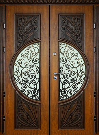 Двустворчатая входная дверь со стеклом №39