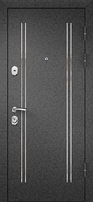 Дизайнерская современная дверь для дома №7 станет ярким акцентом вашего интерьера. Она идеально подходит для установки в частных домах, квартирах или офисах, придавая помещению стиль и современный шарм. Внешняя отделка с молоточковым напылением придает двери устойчивость к механическим повреждениям и атмосферным воздействиям, сохраняя её внешний вид на долгое время. Внутреннее покрытие из МДФ добавляет прочности и долговечности. Дополняет дизайн зеркало, которое не только украшает дверь, но и визуально расширяет пространство. Конструкция с металлическим каркасом и листом металла толщиной 2 мм обеспечивает высокую надежность, а профильные трубы усиливают жесткость полотна. Два контура уплотнителей защищают от холода и сквозняков, обеспечивая дополнительный комфорт. Дизайнерская современная дверь для дома №7 от производителя: быстрое изготовление и монтаж в Ожерелье, индивидуальные размеры, широкий выбор материалов и фурнитуры, официальная гарантия до 10 лет.